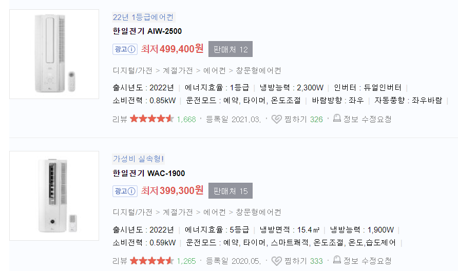 파세코 ,삼성전자 윈도 핏이 제일 처음 보이고 구매량도 많아 보입니다. 상단에 뜨고 구매량이 많다는 것은 아무래도 제품이 괜찮다는 뜻 아닐까요?